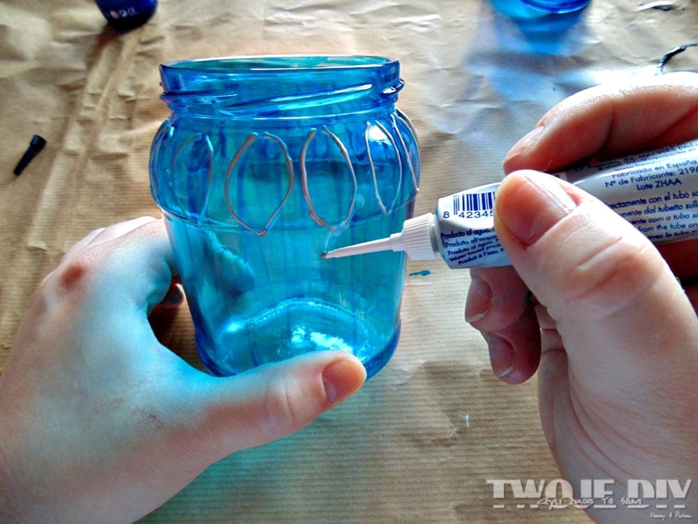 Najbardziej zadowolona jestem z efektu farbowania szkła. Wiele już robiłam prób z farbowaniem butelek i nigdy nie osiagnęłam takiego efektu. Farba do szkła LaPajarita rozprowadziła się idealnie i szkło zostało pokryte cienką warstwą, a co najważniejsze zachowało przeźroczystość.
