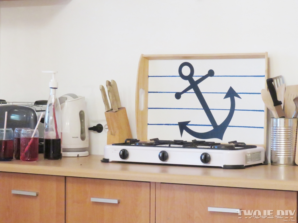 Taca z kotwicą chroni ścianę przed gotującymi się potrawami.