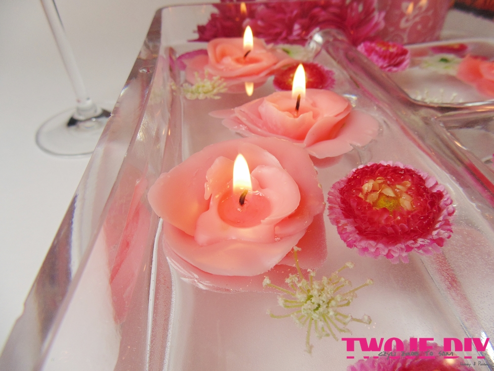 Myślę, że Was przekonałam, że wykonanie takich świeczek nie jest trudne. Jeżeli macie ochotę, to zobaczcie też inne moje pomysły na świeczki tutaj. Moje różyczki już pływają i cieszą oko. To jest świetny pomysł na dekorację stołu weselnego, komunijnego, na chrzciny, urodziny, imieniny, a Wy jak go wykorzystacie?