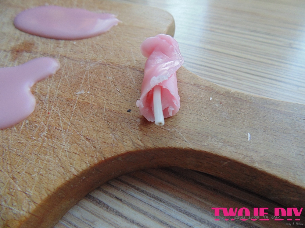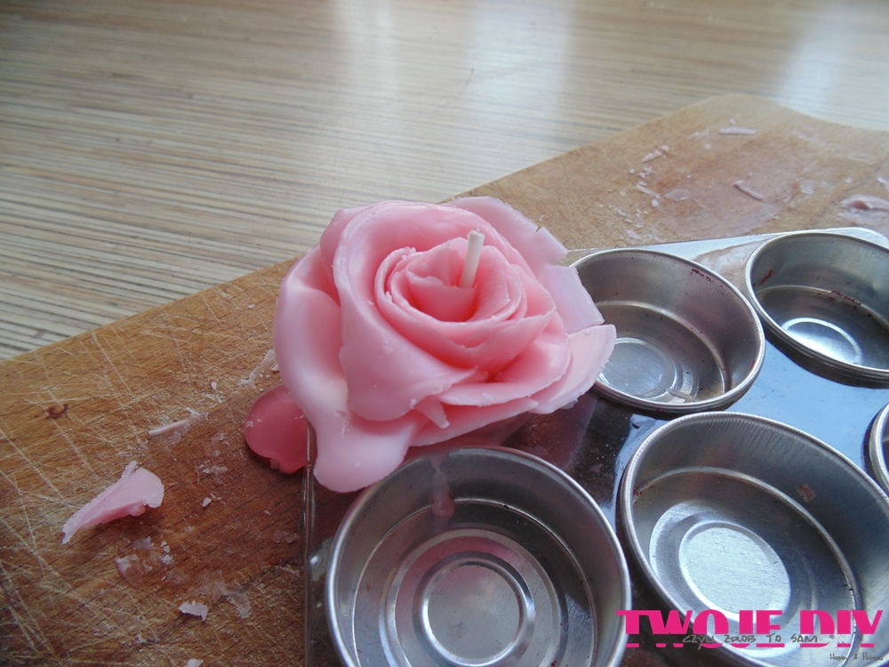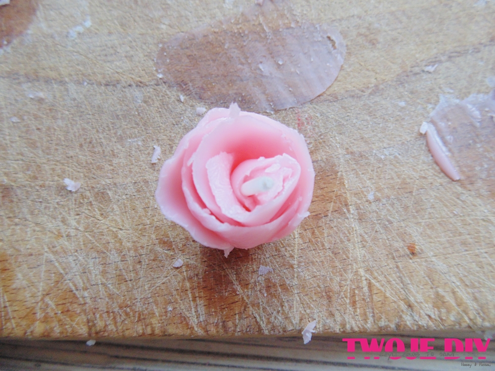 Ściskamy wosk u dołu, wtedy róża bardziej nam się rozłoży.