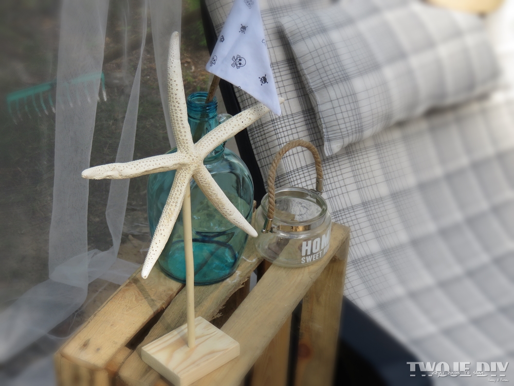 Kolejna, prawie darmowa dekoracja do domku letniskowego. Za rozgwiazdę dałam parę złotych nad morzem, a reszta z odzysku i lasu. To takie proste, a jak cieszy. :)