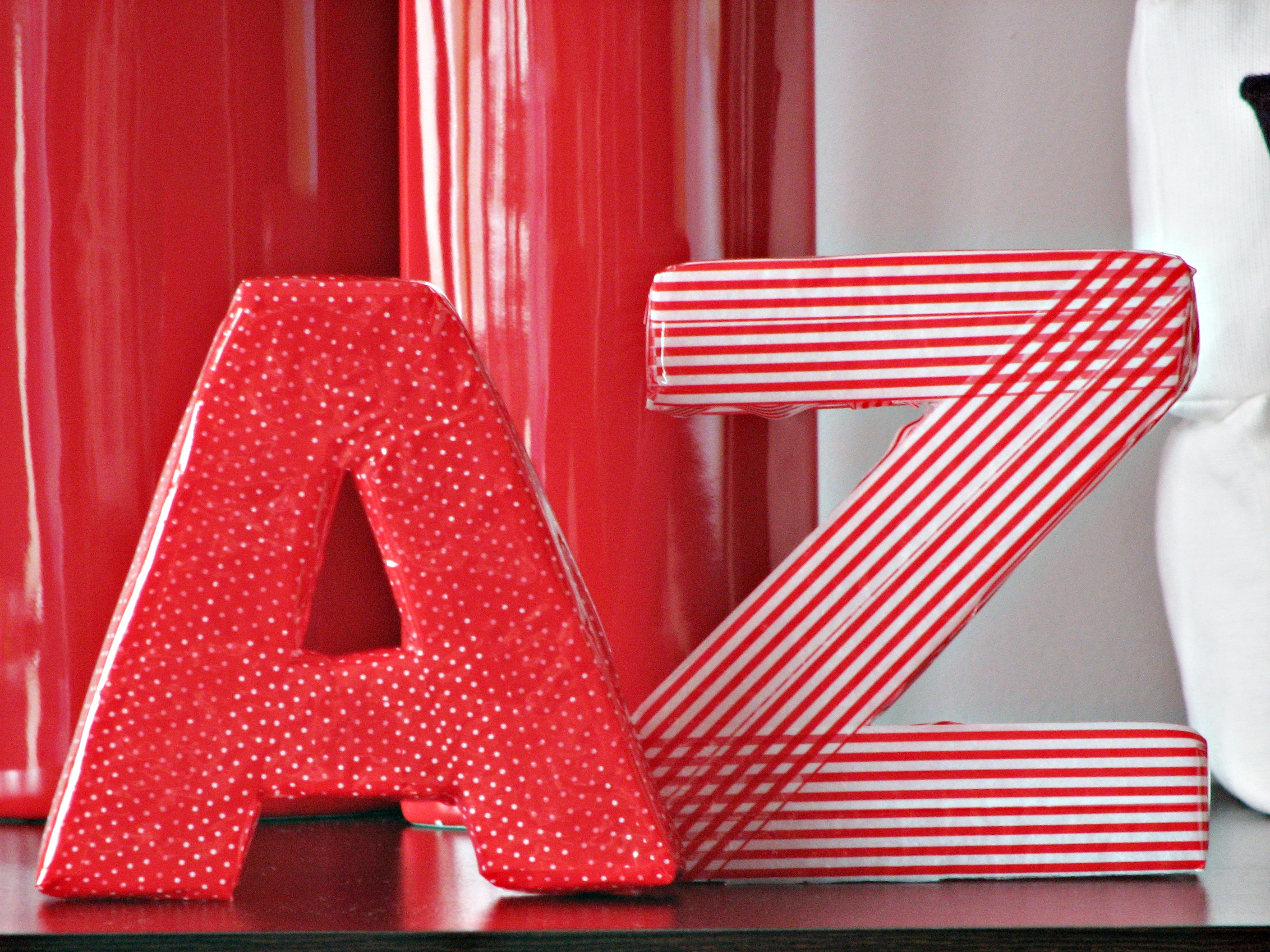 Trafiła w moje ręce pianka i zrobiłam z niej literki. To było błyskawiczne DIY, użyłam do niego taśmy dekoracyjnej kupionej w