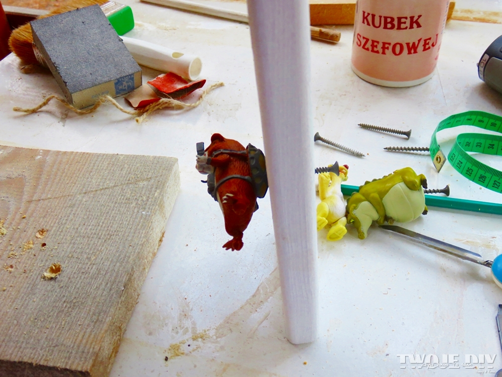 Wkręcamy wkręty, a z drugiej strony nakręcamy plastikową figurkę.